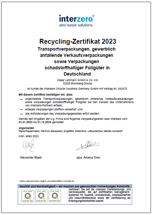 Recycling Zertifikat Interseroh 2023 | .pdf