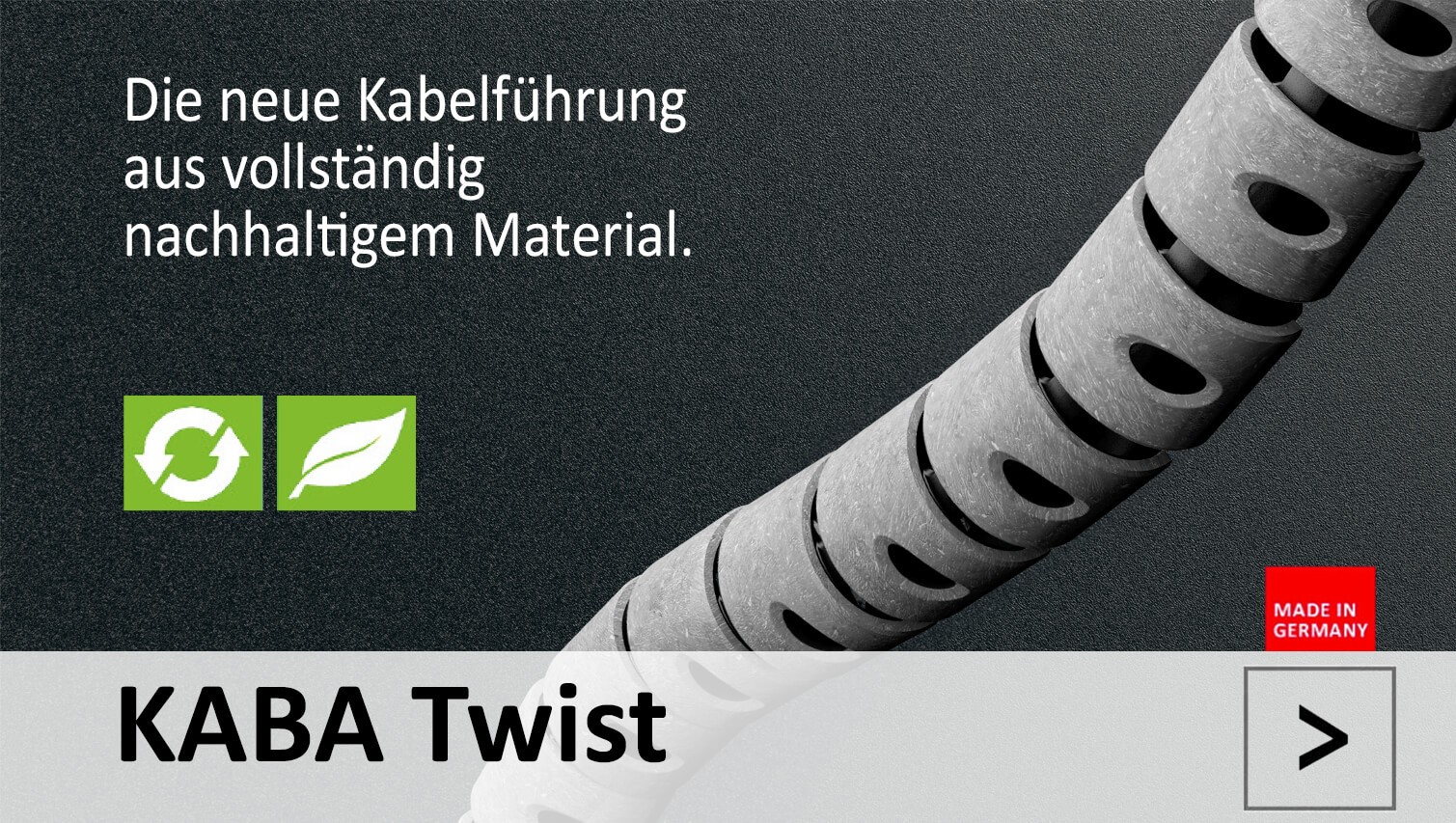 NEU: Die Kabelführung Kaba Twist aus vollständig nachhaltigem Material.