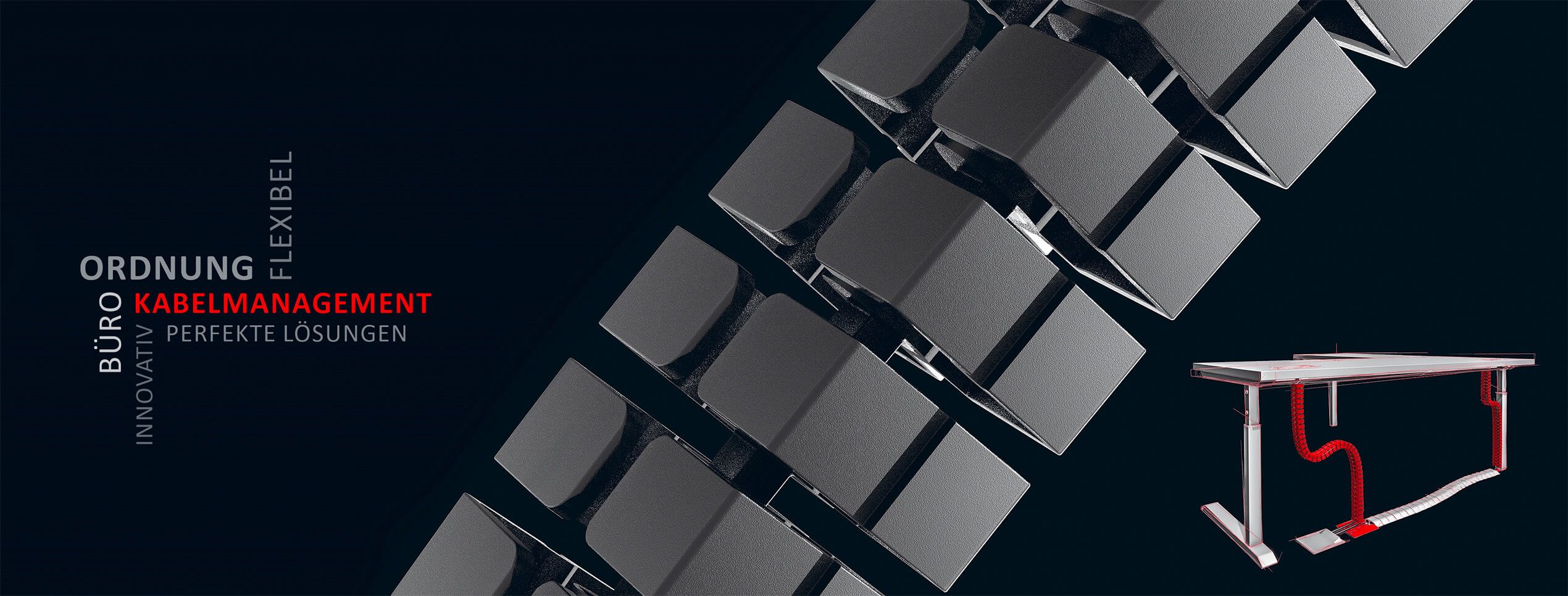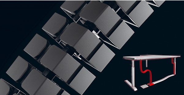Durch ihre hohe Elastizität passen sich die Kabelführungsketten ideal allen Positionen des Schreibtisches an. Dieses durchdachte System bringt innovativ Ordnung ins Büro.